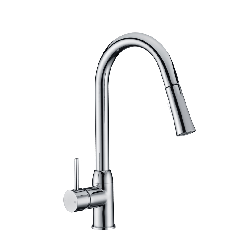 This faucet integrates a pull-out spray head, 360° rotating water supply, and efficient cleaning functions, meeting the dual requirements of durability and practicality for apartments, hotels, and construction projects. It features an ergonomic pull-out structure, easily covering double sinks or large-sized kitchen sinks, effectively enhancing cleaning efficiency; the high-arc water supply design reserves sufficient operation space for large pots and tableware, suitable for modern residential and commercial kitchen environments. It is made of selected corrosion-resistant metal bodies and precise ceramic valve cores, ensuring smooth and stable operation over a long period, reducing maintenance and replacement costs, and suitable for long-term project configurations.