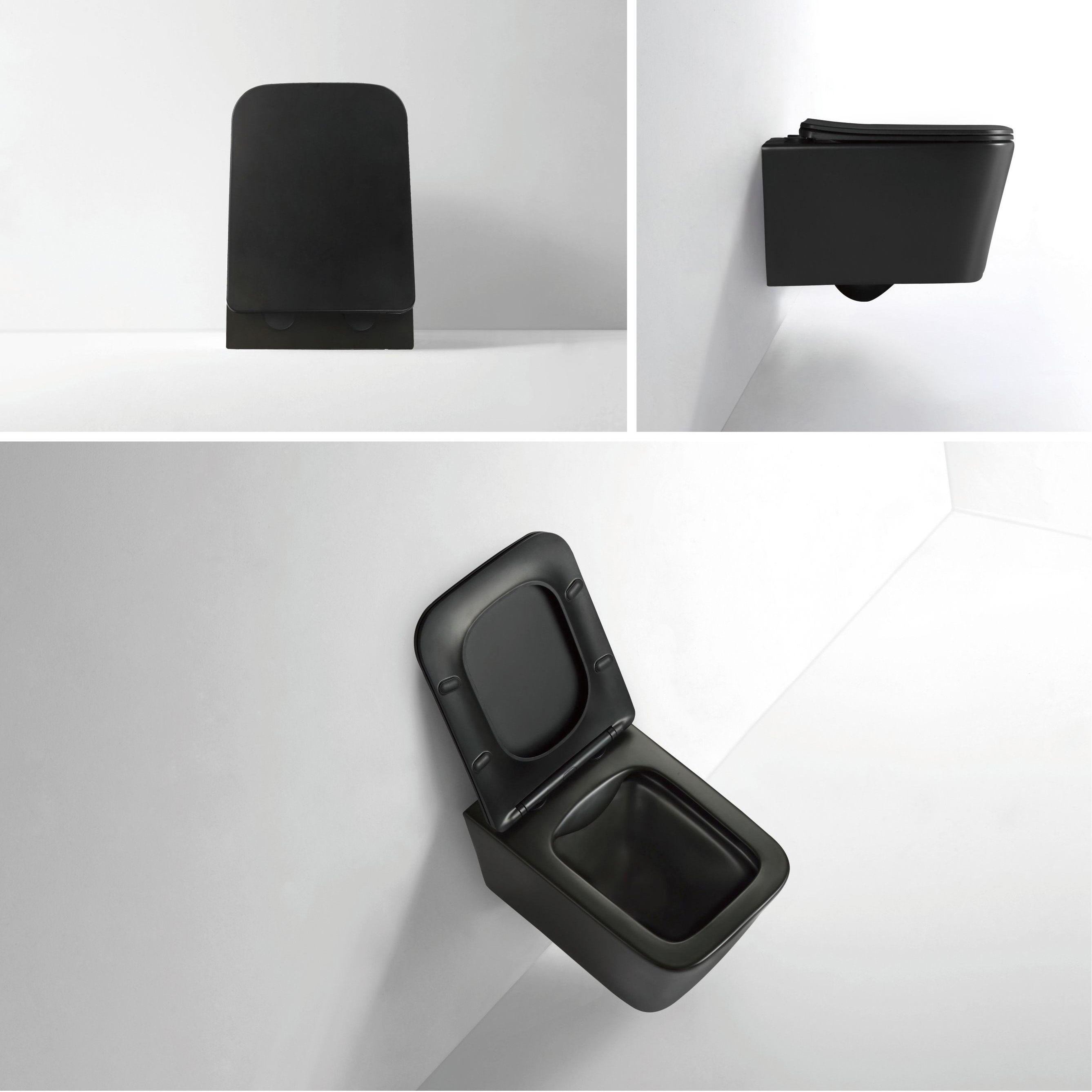 Modern bathroom fixtures - wall-mounted black ceramic toilet with frameless design 5170MB